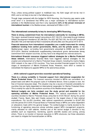 over the period 2012-2014. Financial flows to Protected Areas or MPAs are rather dependent