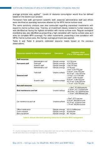 Table 8: Annual estimated operating resources for effective MPA management