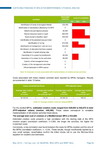 For the studied MPAs, estimated creation costs ranged from €29,930 to €50,075 in total