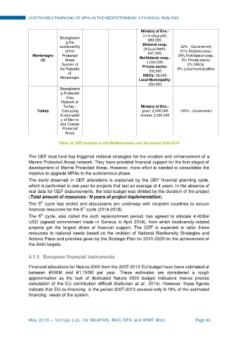 Table 16: GEF projects in the Mediterranean over the period 2008-2014