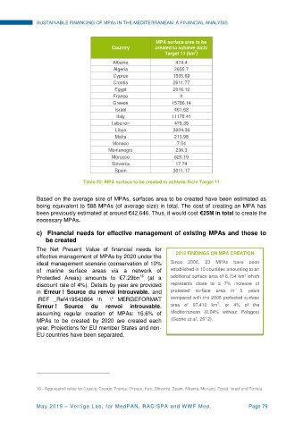 Table 22: MPA surface to be created to achieve Aichi Target 11