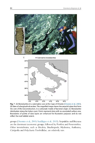 Fig. 7 (A) Biostalactites in a submarine cave at the Cape of Otranto (Onorato et al., 2003).