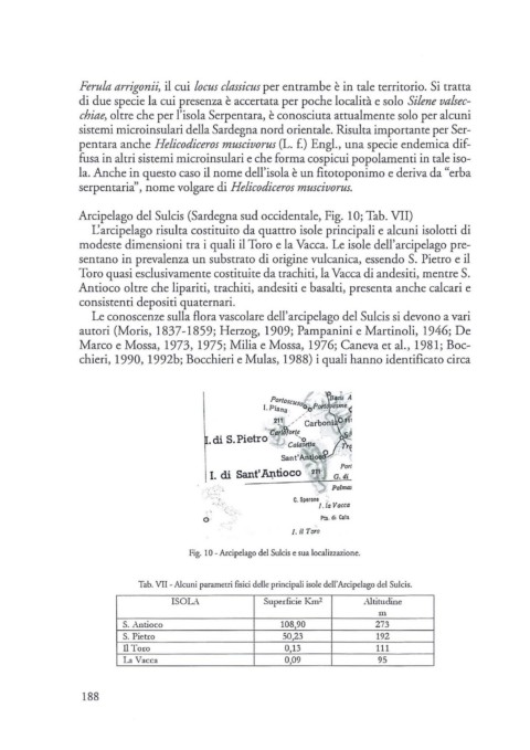 T ab. VII -Alcuni parametri fisici delle principali isole dell'Arcipelago del Sulcis.