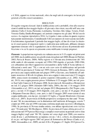 del 2000, ma la nidificazione era già divenuta irregolare nel 2008 (Boano & Pulcher,