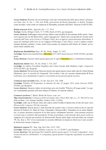 36 C. Brullo & al.: Lectotipificazione e loci classici di alcuni endemismi della ...