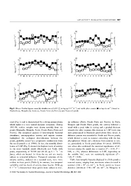 Fig. 5 Oliveri-Tindari lagoon: monthly distribution of LAP (& in log mg C l ÿ1 h ) and viable plate counts (& in log cfu ml ) found in
