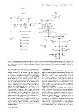 close affinity of Mediterranean samples with the Indo-Pacific clade. Circle size is proportional to the frequency of the haplo-
