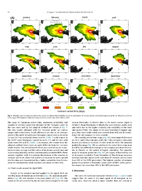 monthly maps of minimum arrival time (Fig. 6A), maximum prob- The cases of maximum transport shown in Figs. 3 and 4 could