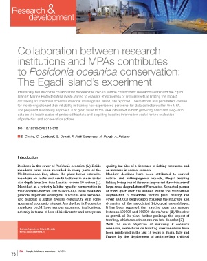 Preliminary results on the collaboration between the ENEA’s Marine Environment Research Center and the Egadi