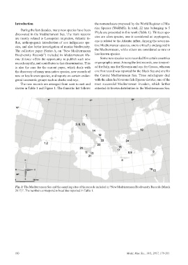 Fig. 1: The Mediterranean Sea and the sampling sites of the records included in “New Mediterranean Biodiversity Records (March