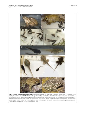 offspring from cross shown in a; c-d: offspring in the age of seven days, showing dead and malformed embryos and tadpoles in comparison