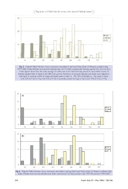 Fig. 5. Migrant Pallid Harriers Circus macrourus recorded in April and May, Strait of Messina, southern Italy,