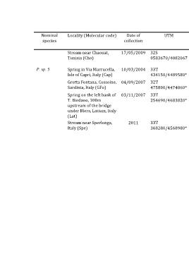 P. sp. 5 Spring in Via Marrucella, 10/03/2004 33T 0 N.D N.D 80% ethanol KM668757- KM668797- KM668837-