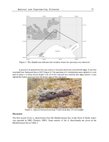 recorded from Yeşilovacık Bay in 2017 (Figure 2). The specimen of A. dactylomela were sighted in a rock