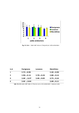 fig. 5.1.4-a – Valori dell’ indice di Margalef per unità ambientale