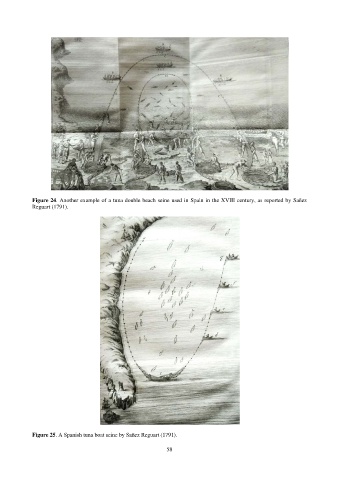 Figure 24. Another example of a tuna double beach seine used in Spain in the XVIII century, as reported by Sañez Reguart (1791). Figure 25. A Spanish tuna boat seine by Sañez Reguart (1791). 58