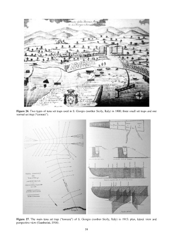 Figure 26. Two types of tuna set traps used in S. Giorgio (norther Sicily, Italy) in 1800; three small set traps and one