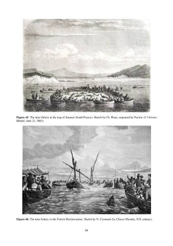 Figure 44. The tuna fishery in the French Mediterranean. Sketch by N. Cosmand (La Chasse Illustrée, XIX century).