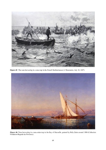 Figure 46. Tuna harvesting in a tuna seine trap in the Bay of Marseille, painted by Feliz Zeim around 1880 (Collection