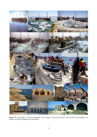 Figure 52. Patchwork of various photographic color images of tuna trap activities and old tuna trap buildings and anchors in Sicily and Sardinia in recent times. 74