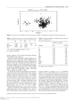 Table 2. Analysis of variance on the ratio height/diameter Table 3. Canonical coefficients of discriminant analysis of