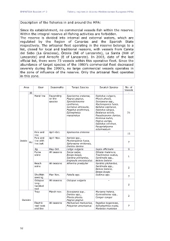 respectively. The artisanal fleet operating in the reserve belongs to a