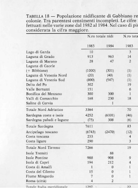 TABELLA 18- P opolazione nidificante di Gabbiano reale in Italia negli anni 1983-1984 e dimens ioni delle