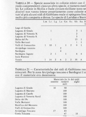TABELLA 21 -Caratteristiche dei nidi di Gabbiano reale (misure medie in cm). Tra parentesi numero casi