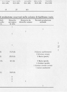T ABELLA 22 - Grado di protezione e casi di disturbo di predazione osservati nelle colonie di Gabbiano reale.
