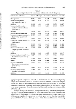 Performance indicators Fishers Managers Researchers Residents Tourists