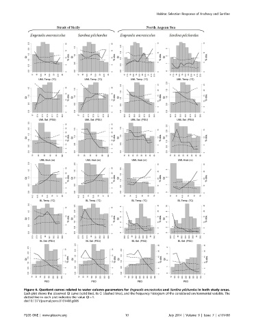 Figure 6. Quotient curves related to water column parameters for Engraulis encrasicolus and Sardina pilchardus in both study areas.