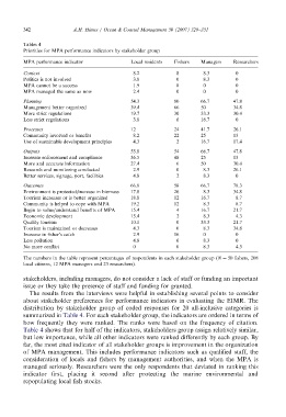 The numbers in the table represent percentages of respondents in each stakeholder group (N ¼ 50 fishers, 208