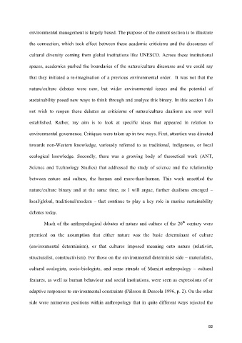 spaces, academics pushed the boundaries of the nature/culture discourse and we could say