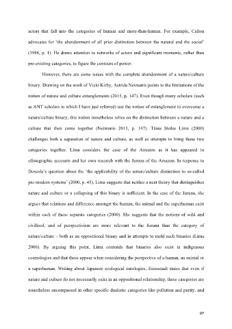 notion of nature and culture entanglements (2015, p. 147). Even though many scholars (such