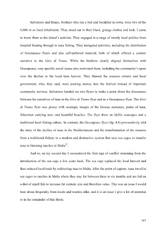 between the narratives of tuna in the Giro di Tonno flyer and in a Greenpeace flyer. The Giro