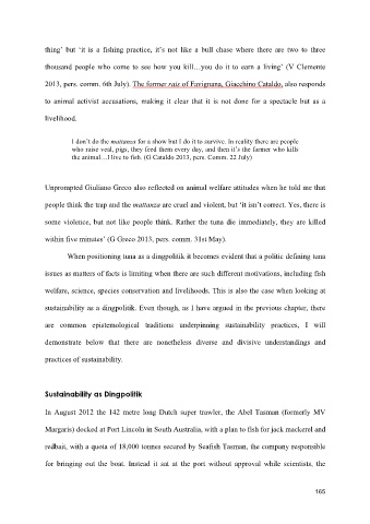 the animal…I live to fish. (G Cataldo 2013, pers. Comm. 22 July)