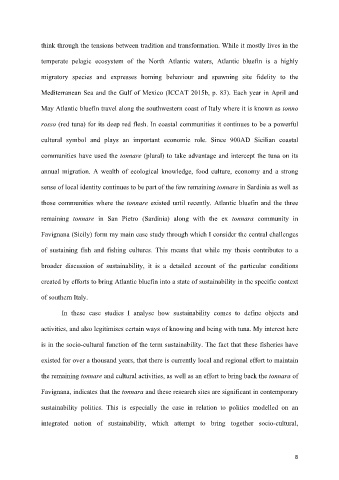 of sustaining fish and fishing cultures. This means that while my thesis contributes to a