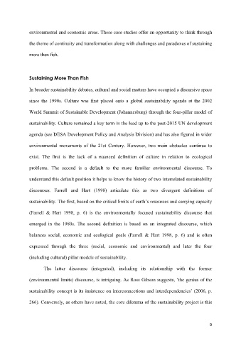 (including cultural) pillar models of sustainability.
