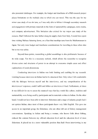 hand, I would not have been able to interview fishermen and a range of industry people had I