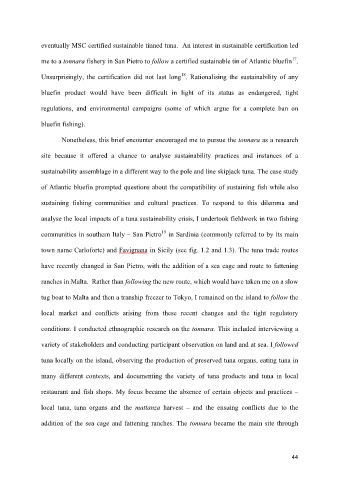 conditions. I conducted ethnographic research on the tonnara. This included interviewing a