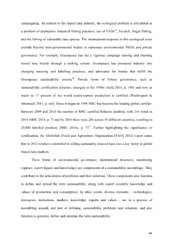 campaigning. In relation to the tinned tuna industry, the ecological problem is articulated as