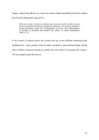 chapter I analyse the reflexive use of the term culture within sustainability discourses. Kunda