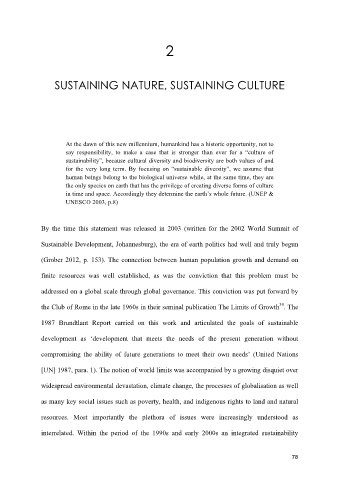sustainability”, because cultural diversity and biodiversity are both values of and