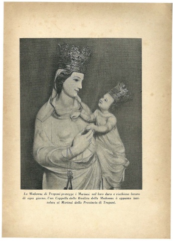 La Madonna di Trapani protegge i Marinai nel loro duro e rischioso lavoro di ogni giorno. Una Cappella della Basilica della Madonna è appunto inti- tolata ai Marinai della Provincia di Trapani.