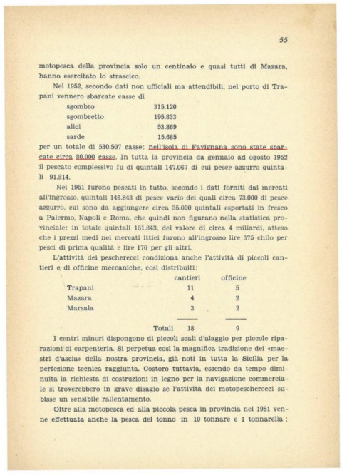 Nel 1952, secondo dati non ufficiali ma attendibili, nel porto di Tra-