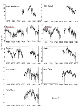 Trap catch (log (N)) 5 1650 1700 1750 1800 1850 1900 1950 9 Saline