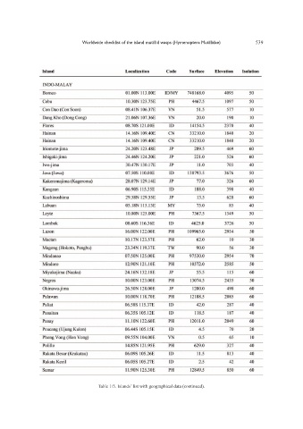 Worldwide checklist of the island mutillid wasps (Hymenoptera Mutillidae) 539 Table 1/5. Islands’ list with geographical data (continued).