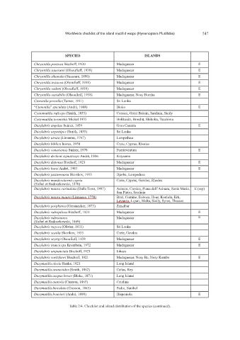 Worldwide checklist of the island mutillid wasps (Hymenoptera Mutillidae) 547