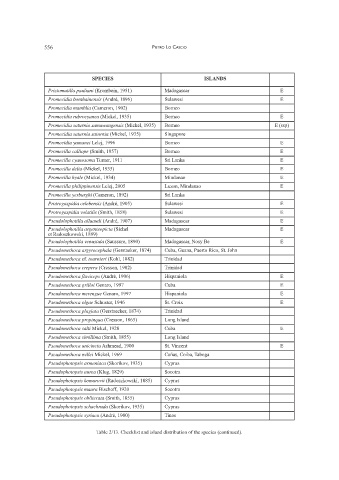 Table 2/13. Checklist and island distribution of the species (continued).