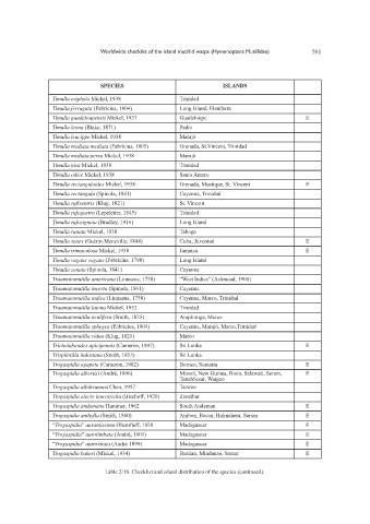 Worldwide checklist of the island mutillid wasps (Hymenoptera Mutillidae) 561